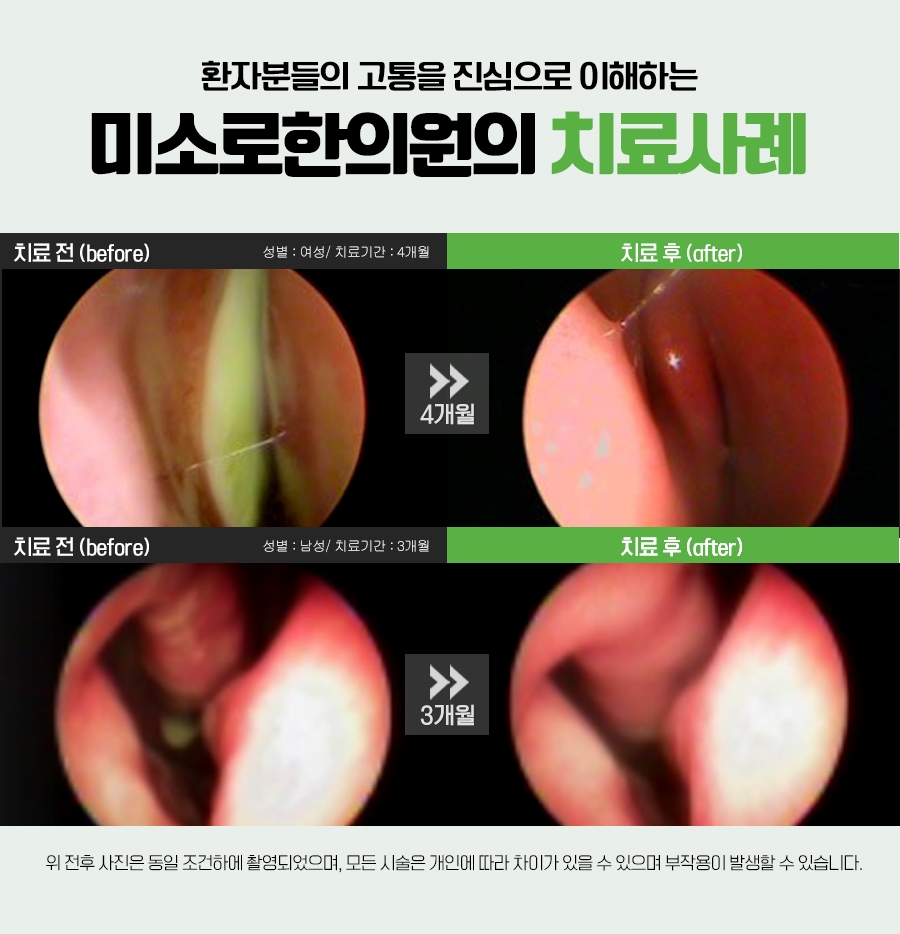 따라서 부산축농증 한의원의 치료에서는 위에도 감염으로 발현되는 환부를 관리하기 위해 보다 자세히 파악하는 것이 우선이었습니다.