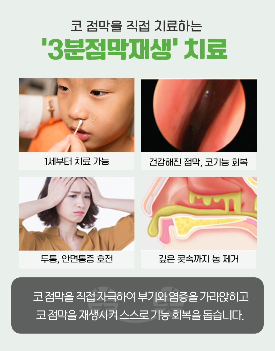 본원에서는 3분간 실시되는 점막재생치유를 통해 개개의 기능을 원활하게 회복시켜 면역력 증진과 함께 누적된 농도를 제거하고 섬모의 기능을 향상시켜 노폐물 배출이 충분히 이루어지도록 도와드렸습니다.