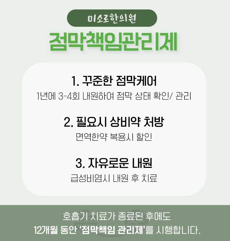 무엇보다 면역력 저하로 더욱 심해지기 때문에 본원을 통해 신체의 전반적인 컨디션을 파악하고 그에 따른 대처 방법을 모색해 보는 것이 좋다고 생각했습니다.
