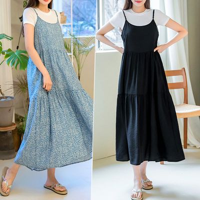COTTON 65% NYLON 35% 바스락거리는 재질로 시원하게 입기 좋은 원단의 원피스입니다!미디기장이라 무릎 위로 살짝 올라오는 기장감으로 한여름까지 쭉 편하게 입기 좋은 디자인이였는데