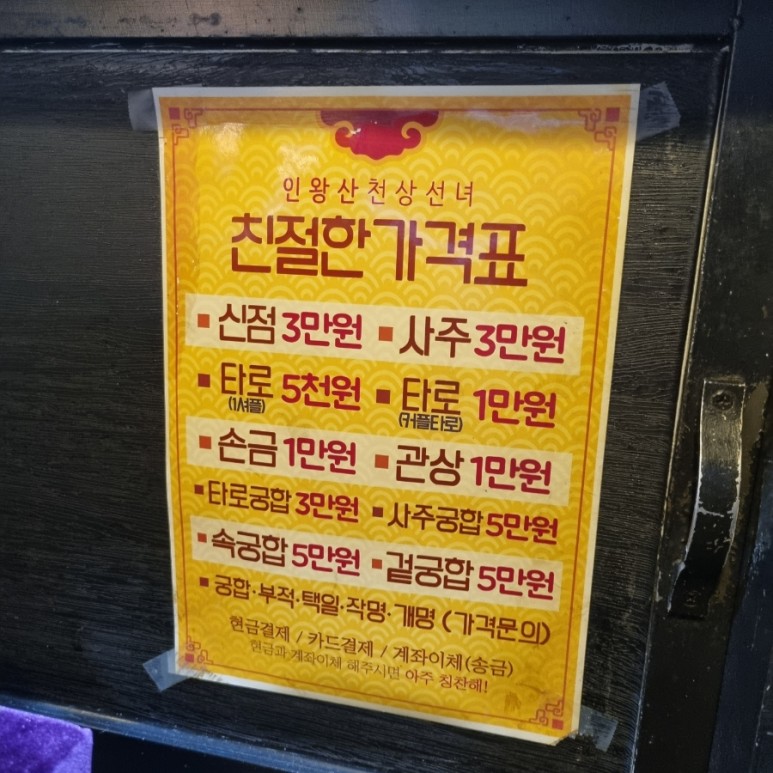 오늘은 건대사주를 즐겨보기로 유명한 인왕산 천상선녀 사주타로(四柱太郞)에 다녀온 감상입니다.