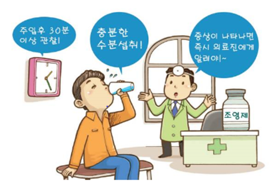 조영제 투여 후 CT, MRI 검사가 끝나도 약 30분 이상 병원에 머물며 관찰하는 것이 좋습니다!→ 조영제 사용 전 테스트를 통해 음성이라도 부작용이 발생한 경우가 70%여서 검사 전 확실하게 부작용을 예측하기 어렵기 때문입니다.만약 응급상황이 발생하면 즉시 대처할 수 있겠죠?물을 충분히 마셔요.→ 물을 충분히 마시면 검사 후 몸에 남아 있는 조영제를 소변으로 빨리 배출할 수 있기 때문이에요!※ 식품의약품안전처가 허가한 요오드계 조영제는 어디서 확인할 수 있습니까?’엔드락’ 사이트 http://nedrug.mfds.go.kr 의약품 등의 검색, 의약품 사이버 불만, 제품 및 제조사 정보, 의약품 광고 검색, 규격 기준 정보 등을 수록 nedrug.mfds.go.kr → 의약품 검색을 통해 확인할 수 있습니다.잘보시고이해하셨죠?^^조영제의 부작용이 불안해서 미리 겁을 먹고 마시는 분들이 많다고 들었는데요!