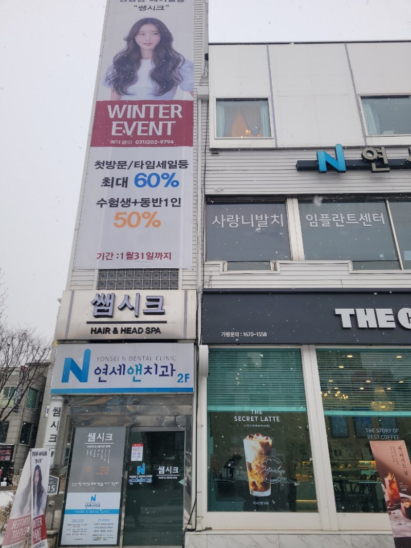 영통 망포 역 미용실 샘 시쿠는 사롱 그랑츠이 청담 브랜드 샘 시쿠 수원 구란쯔점에 리뉴얼했다고 합니다.망포 역 출구의 4번 또는 5번 출구로 나와서 롯데리아 3층에 위치한 엘리베이터를 타고 오르면 좋은데, 건물 외벽만 보더라도 할인 행사를 많이 가고 있었습니다.개장 행사 첫 방문. 타임 세일의 최대 60%할인에서 수험생+동반 한명 50%할인까지 행사가 여러가지군요.