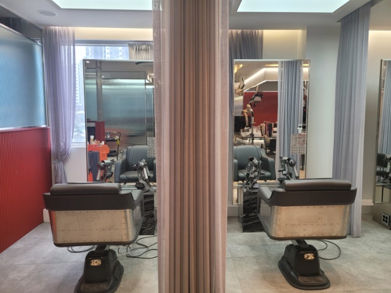 커트하는 공간과 마술을 하던 공간은 이렇게 1:1로 사적인 공간입니다.옆에 칸막이가 있거나 커튼으로 덮어 옆에 다른 손님들과 부딪히는 일이 없어서 다행이에요.