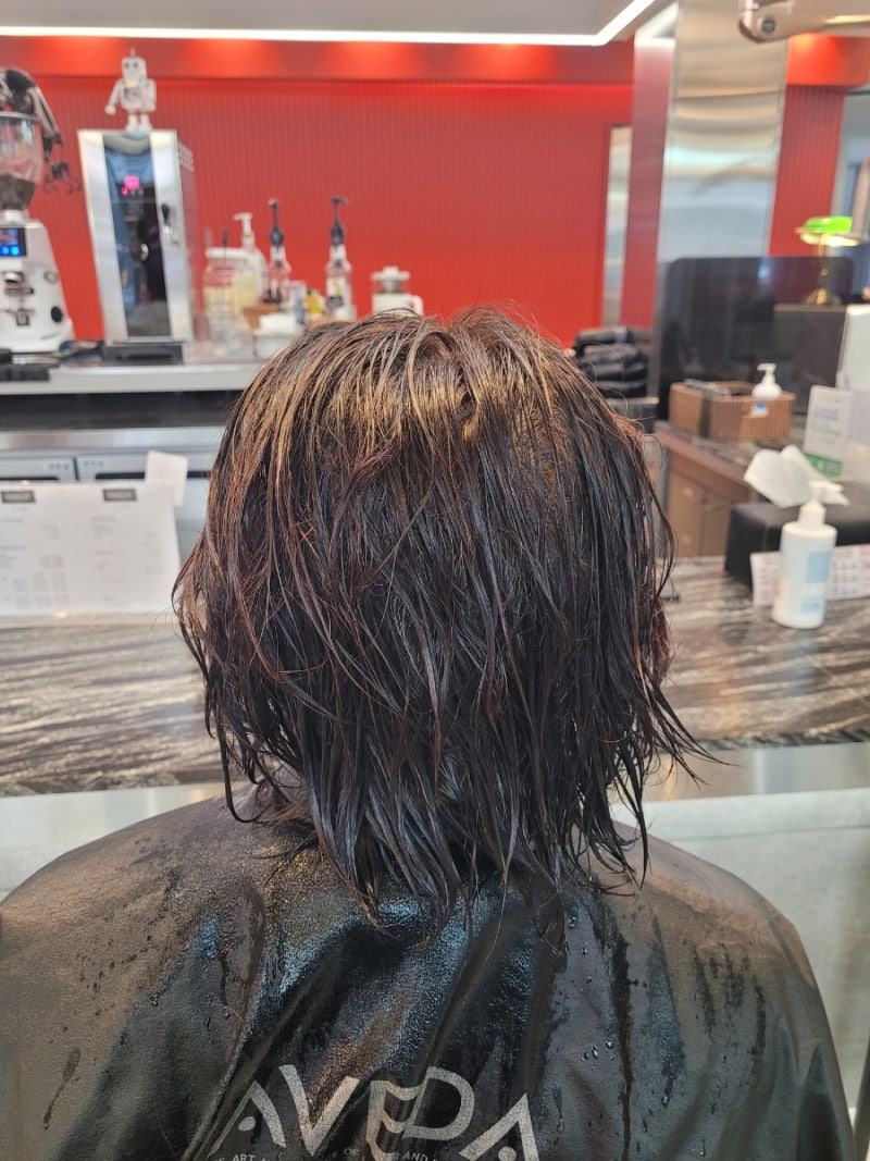 상담이 끝나고 먼저 머리를 감다!샴푸실도 안쪽이 잘 보이지 않는 곳에 마치 침대처럼 편한 의자였는데요.2번째의 머리를 씻고, 좀 10분? 정도 머리에 중화제를 뿌리고 기다리는 동안에 잠들고 말았습니다. 그만큼 샴푸실의 의자가 편했다는 거죠?