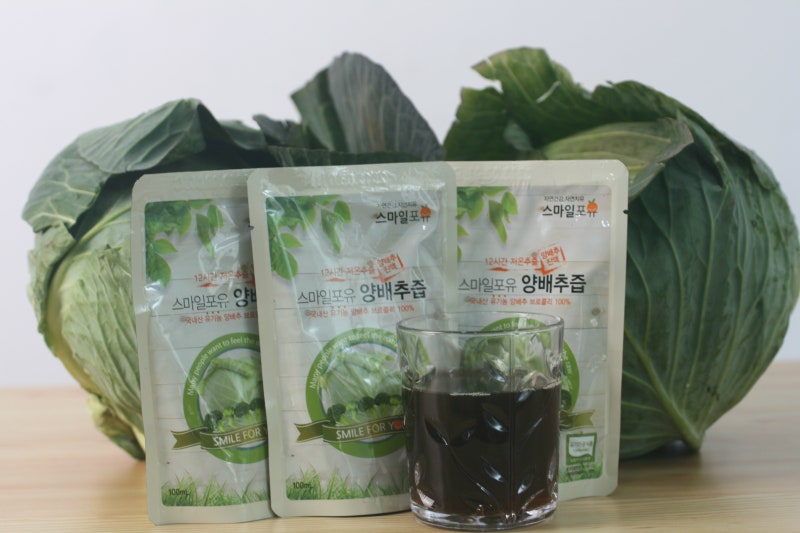 국산 유기농 양배추즙이라고 해서 붙어있는 즙을 먹어야 해요 양배추를 통째로 육즙으로 만들 테니까 농약은 노노!