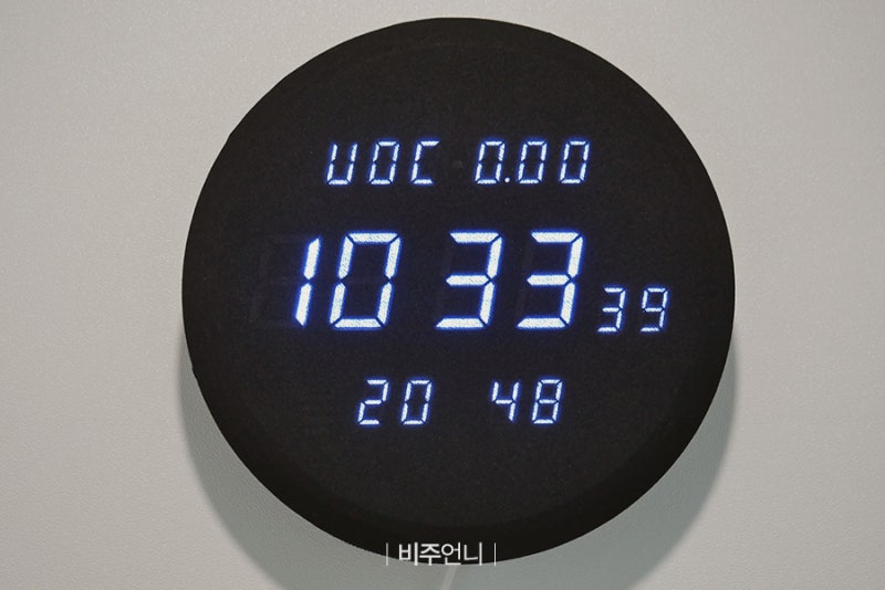 미세먼지 측정기 오라클은 인테리어 LED 시계 기능도 있습니다. 조도 센서가 내장되어 있어 밝을 때는 더 밝고 어두울 때는 조도를 낮춰주기 때문에 밤에 잘 때도 신경이 쓰이지 않았습니다. 예전에 벽걸이 LED 시계를 사용했을 때는 조도를 가장 낮췄는데 빛이 너무 강해서 잘 때는 끄고 자곤 했거든요. 그런 번거로움이 없어서 다행이에요. 사실 저는 잠을 잘 자는 편인데 신랑이 이런 거에 예민해서 자다가 나가서 끄고 그랬어요. 하지만 이번 오라클은 그렇지 않습니다.