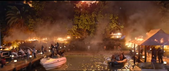 또한 고향도 급속도로 불길에 휩싸이면서 관광객들은 탈출하기 시작하고 뒤늦게 자오맹의 이야기를 떠올리는 해리스는 탈출을 감행하지 않고 부인을 기다리는 것으로 남습니다.